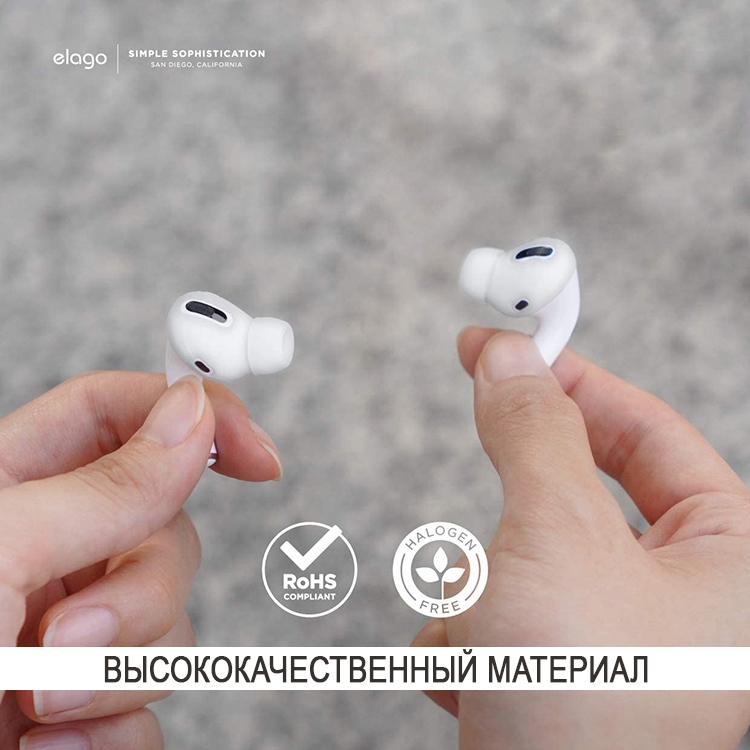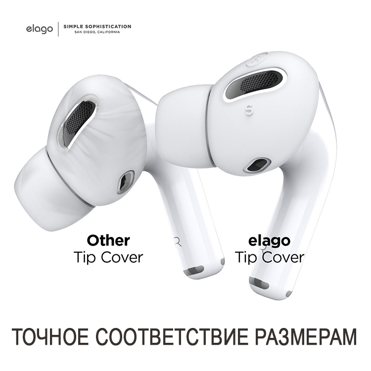 Силиконовые накладки (амбушюры) Elago EarBuds Cover для комфортного использования беспроводных наушников AirPods Pro на протяжении всего дня. Улучшают шумоизоляцию и обеспечивают защиту корпуса от механических повреждений. Выполнены из высококачественного гипоаллергенного материала, светящегося в темноте. Надежно фиксируют наушники эйрподс про в ухе, чтобы они не выпали и не потерялись, если их задеть во время занятий спортом, ходьбы или просто отдыха. Толщина 0.2 мм позволяет не снимать накладку с наушников даже при использовании зарядного чехла. Набор состоит из шести пар накладок трех размеров - две пары размера S, две пары размера М и две пары размера L.