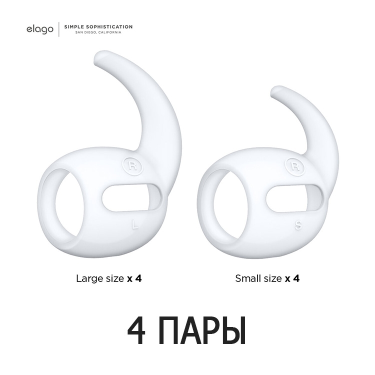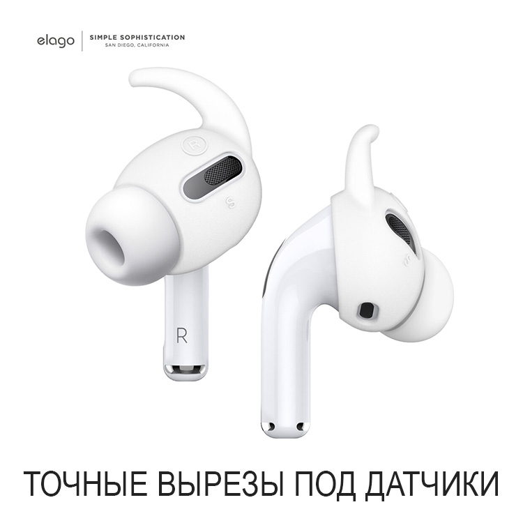 Силиконовые накладки (амбушюры) Elago Earbuds Hook Cover обеспечивают комфортное использование беспроводных наушников AirPods Pro на протяжении всего дня. Выполнены из высококачественного гипоаллергенного материала, светящегося в темноте. Улучшают шумоизоляцию и обеспечивают защиту корпуса от механических повреждений. Специальная конструкция помогает надежно зафиксировать наушники эйрподс про в ухе, чтобы они не выпали и не потерялись, если их задеть во время занятий спортом, ходьбы или просто отдыха. В комплекте четыре пары амбушюр - по две разных размеров.