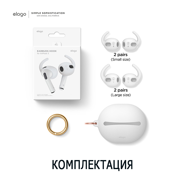 Накладки Elago Earbuds Hooks Cover для AirPods 3 (2021), белые (4 пары)