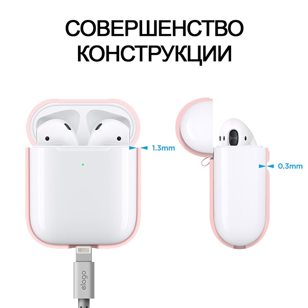 Прочный и надежный чехол из гибкого силикона Elago защитит зарядный кейс с AirPods 2 от царапин и потертостей. Аксессуар имеет приятную на ощупь текстуру, легко снимается и очищается от загрязнений. Его конструкция позволяет подключать кабель Lightning, не доставая кейс из чехла. Очень тонкая стенка напротив LED-индикатора имеет толщину всего 0.3 мм и позволяет отслеживать состояние зарядки, не снимая чехла, предотвращая при этом попадание внутрь пыли и влаги.
