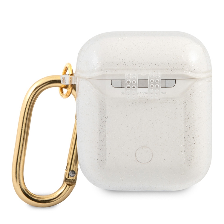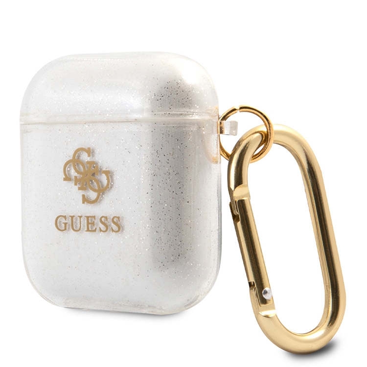 Чехол Guess Transparent Glitter 4G с карабином для Airpods 1/2, прозрачный