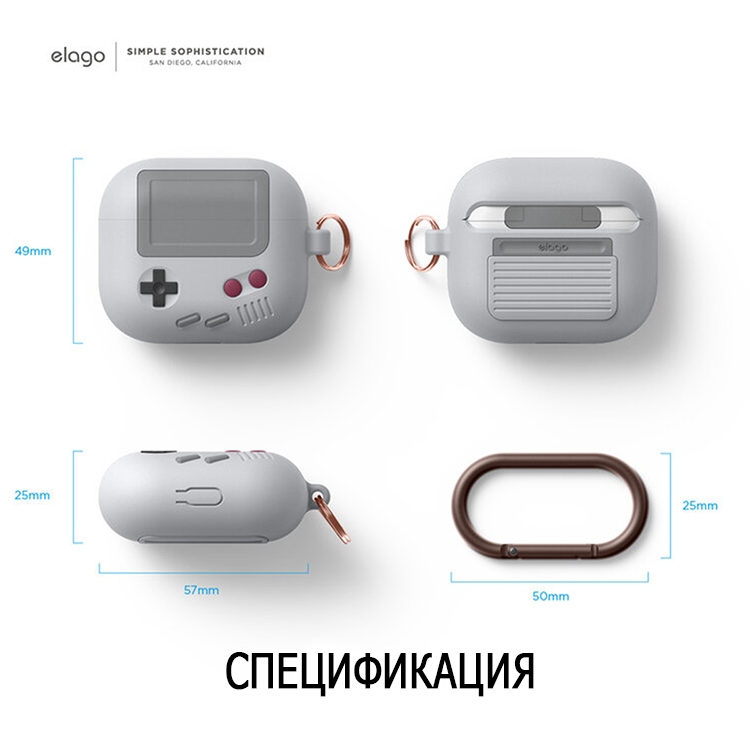 Чехол Elago Unique AW5 Game console Hang case для AirPods 3 (2021), серый