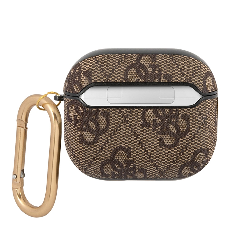 Чехол Guess PU leather 4G metal logo с карабином для Airpods 3 (2021), коричневый
