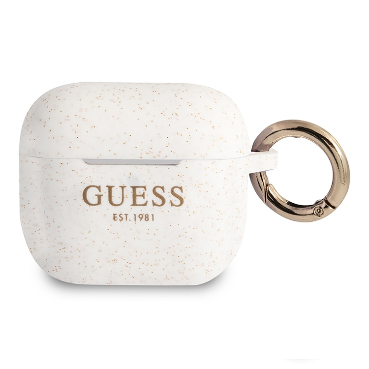 Чехол Guess Silicone Glitter с кольцом для Airpods 3 (2021), белый