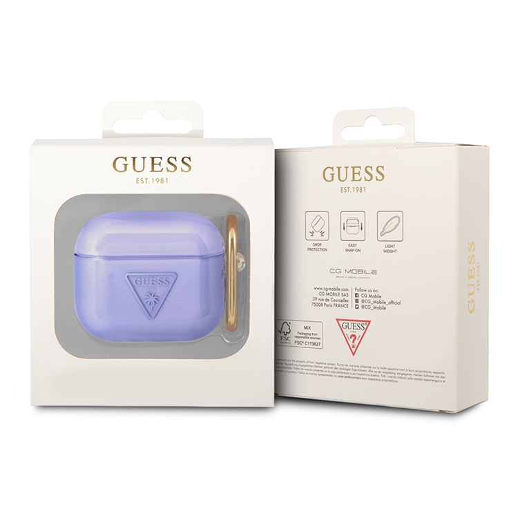 Чехол Guess Translucent Palm Tree с карабином для Airpods 3 (2021), фиолетовый