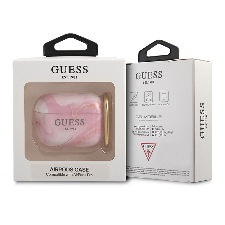 Чехол Guess New Marble Design с карабином для Airpods Pro, розовый