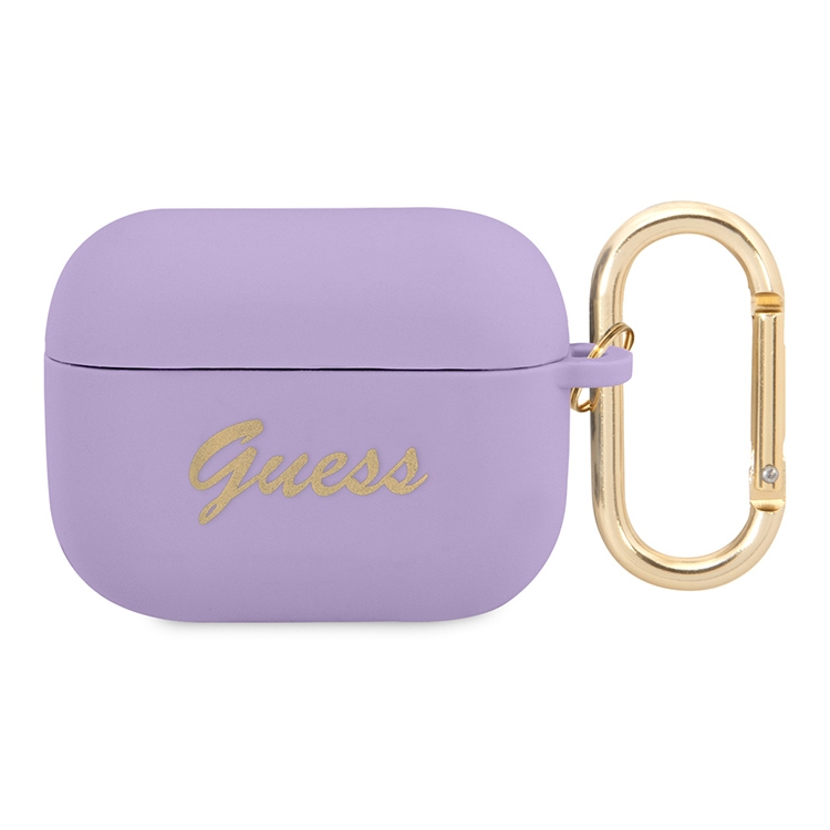 Чехол Guess Silicone Script logo с карабином для Airpods Pro, фиолетовый