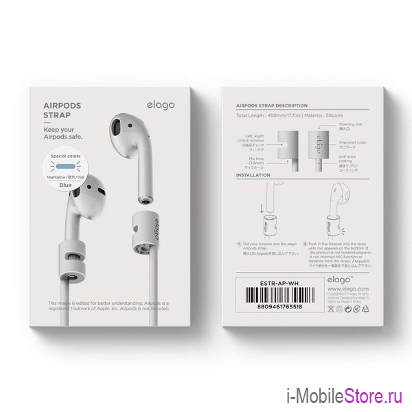 Удобный эластичный шнур Elago Strap с держателями для беспроводных наушников AirPods. Располагается позади шеи, надежно удерживает наушники и не вызывает дискомфорта при ношении. Изготовлен из прочного силикона, светящегося в темноте. Износостойкий материал исключает возможность излома. Длина кабеля 45 см обеспечивает комфортное использование.