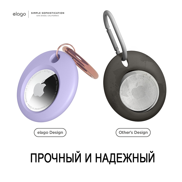 Прочный чехол Elago для AirTag надежно удерживает ваше устройство слежения, защищая его от повседневного использования и падений. Изготовлен из нетоксичного пищевого силикона, что делает его безопасным и позволяет использовать трекер для детей и домашних животных. Карабин позволит закрепить чехол на связке ключей, рюкзаке или сумке.
