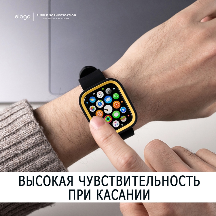 Защитный чехол Elago DUO состоит из высокопрочного силиконового бампера и внутренней сменной рамки из пластика. Мягкие стенки не придают объем, легко очищаются от загрязнений и обеспечивают комфортную ежедневную эксплуатацию. Все функциональные элементы часов остаются доступными пользователю. Благодаря высокому качеству аксессуар надежно защитит Apple Watch со всех сторон и надолго сохранит их внешний вид, высокую степень чувствительности и прозрачности. В комплекте две взаимозаменяемые рамки.