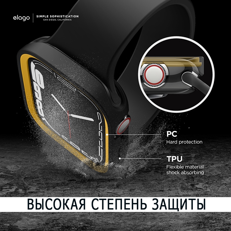 Чехол Elago DUO case для Apple Watch 45/44 мм, черный/желтый