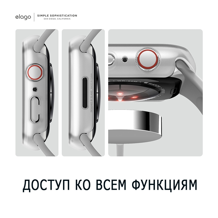 Чехол со стеклом Elago Clear Shield case 9H glass для Apple Watch 45 мм, прозрачный (матовый)
