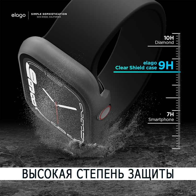 Чехол со стеклом Elago Clear Shield case 9H glass для Apple Watch 45 мм, серый (матовый)