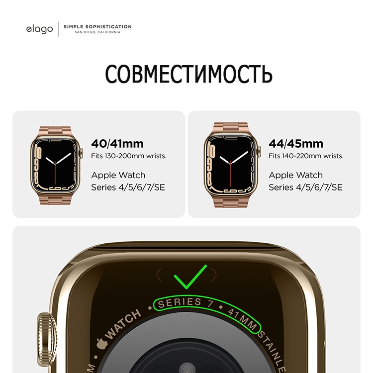 Стильный ремешок Elago Metal Band дополнит дизайн Apple Watch. Браслет идеально подстраивается под размер запястья, его длина регулируется специальным инструментом, входящим в комплект. Складная застежка с двойными замками плотно фиксирует ремешок на запястье. Высокое качество нержавеющей полированной стали обеспечивает надежность, износостойкость и прочность ремешка. Совместим с часами Apple Watch с корпусом 41/40 мм.