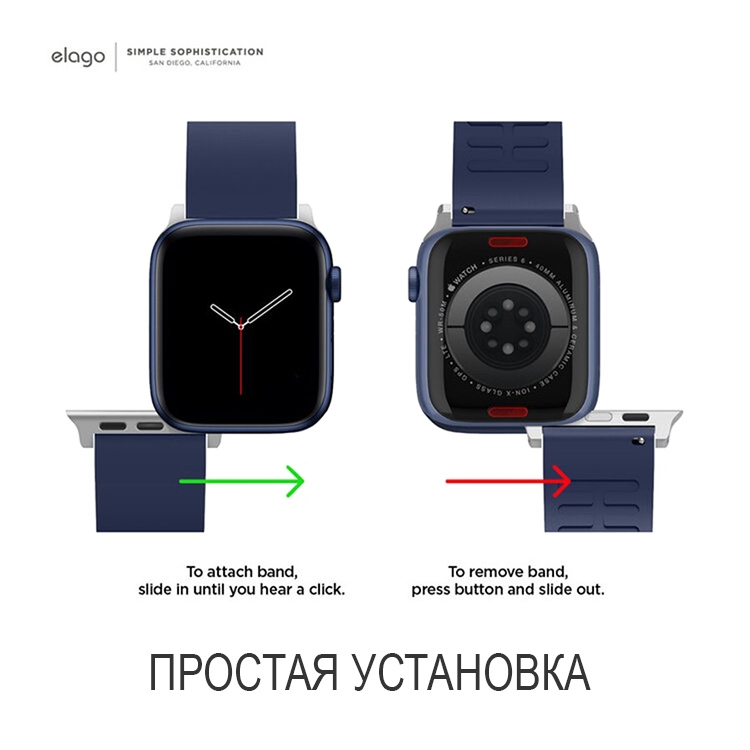 Классический ремешок от ELAGO для Apple Watch с размером корпуса 42-41-40 мм. Изготовлен из высококачественного каучука. Плотный материал добавляет дополнительную химическую и термостойкость. Воздухопроницаемая внутренняя поверхность обеспечивает большую устойчивость к поту. Надежное крепление и эргономичный дизайн делают ношение ремешка чрезвычайно удобным для повседневного использования.