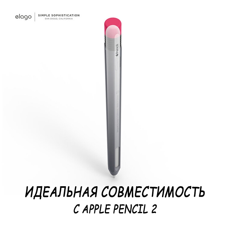Защитный чехол Elago для стилуса Apple Pencil 2. Изготовлен из силикона высокого качества, предотвращает образование царапин на любых поверхностях. Поддерживает беспроводную зарядку и абсолютно все функции стилуса. Совместим с iPad и крепится к нему магнитным способом.