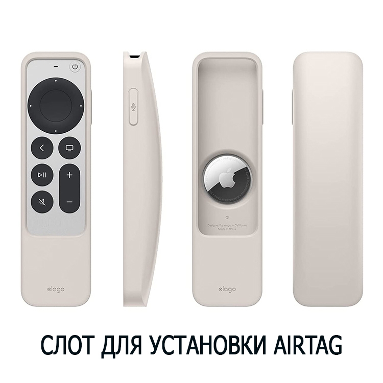 Тонкий защитный чехол Elago из прочного и гибкого силикона для пульта дистанционного управления Apple TV (2021). Легко устанавливается на устройство, не скользит в руках. Оснащен слотом для смарт-трекера Apple AirTag.