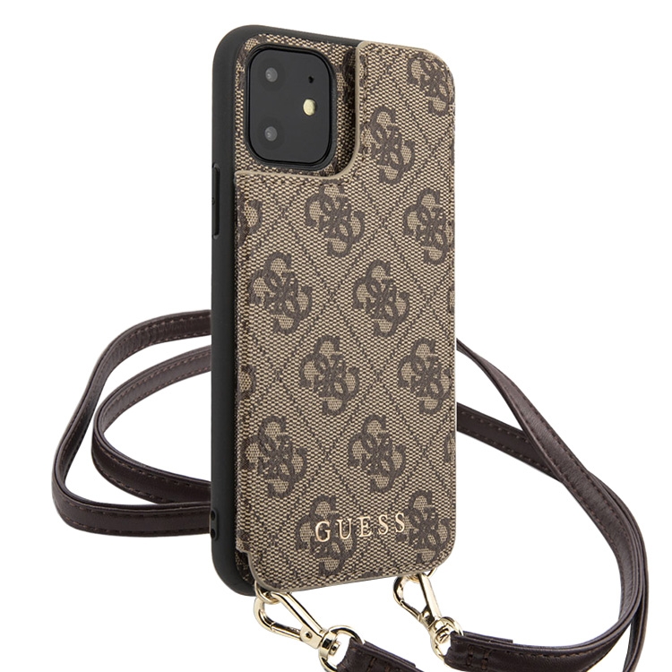 Чехол Guess 4G Crossbody cardslots magnetic Hard для iPhone 11, коричневый