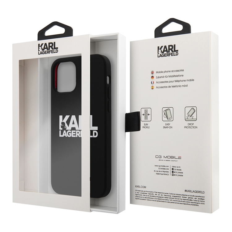 Чехол Karl Lagerfeld Liquid silicone Stack logo Hard для iPhone 12 Pro Max, черный