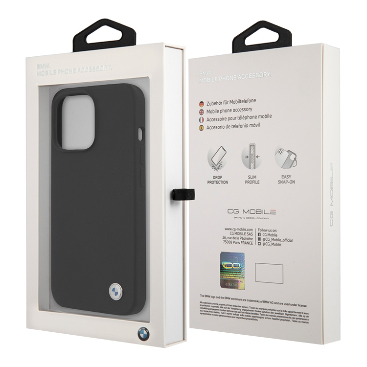 Чехол BMW Liquid Silicone для iPhone 13 Pro Max, черный