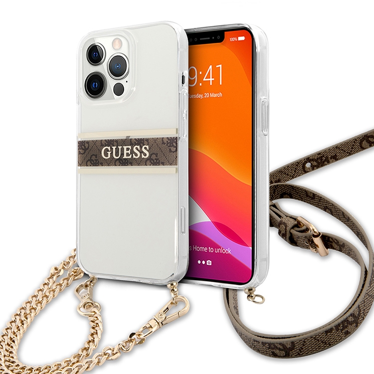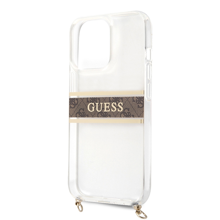 Чехол Guess 4G Stripe Hard Transparent +Gold crossbody chain для iPhone 13 Pro Max