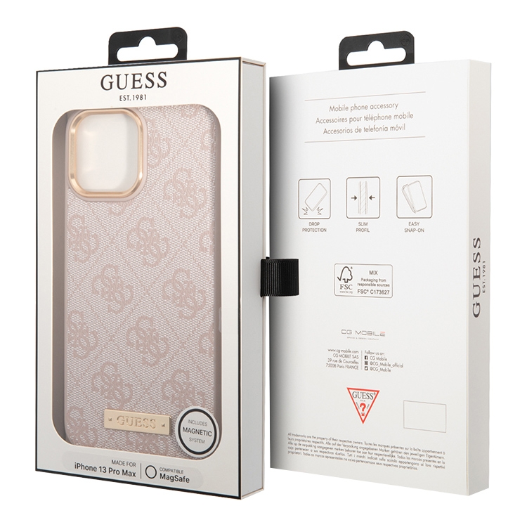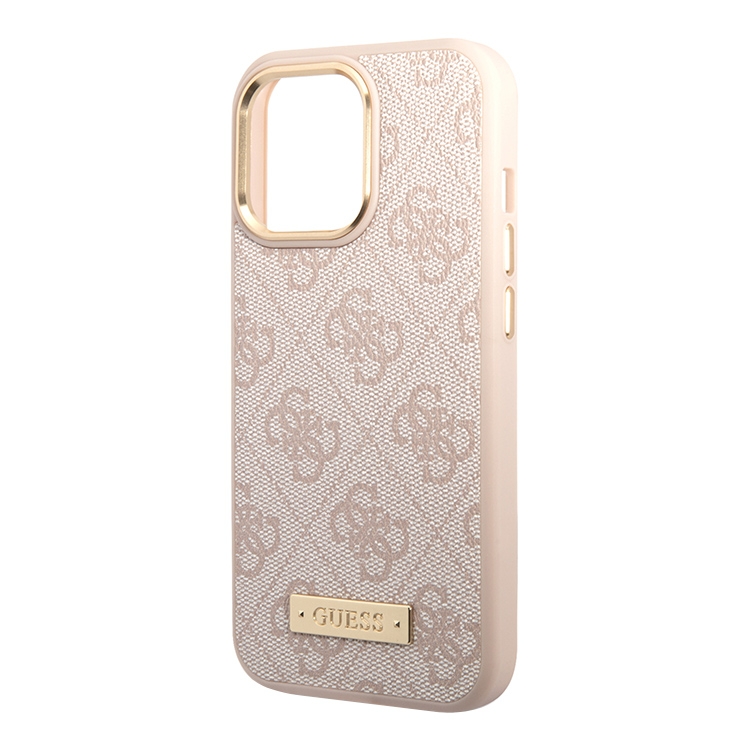 Чехол Guess PU 4G Plate metal logo Hard для iPhone 13 Pro Max, розовый (Magsafe)
