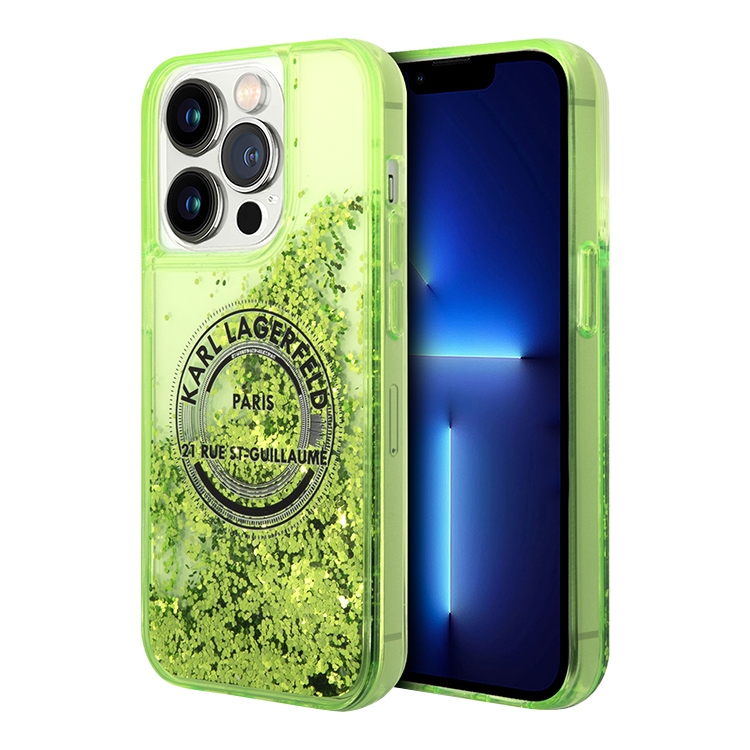 Чехол Lagerfeld Liquid glitter RSG logo Hard для iPhone 13 Pro Max, зеленый