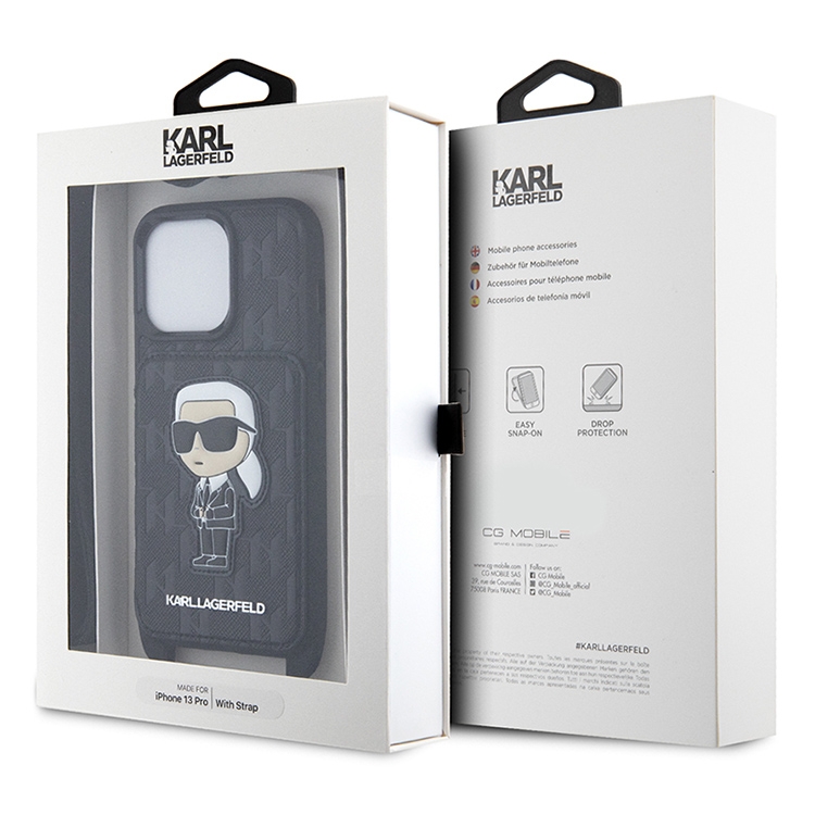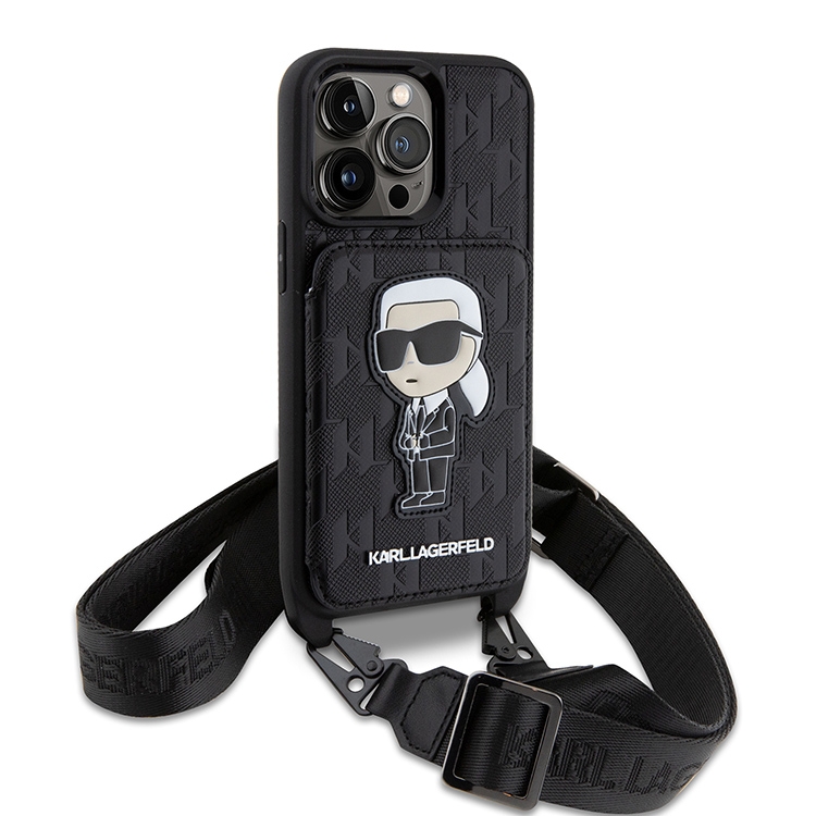 Чехол Lagerfeld Crossbody cardslot PU Saffiano Monogram NFT Karl Ikonik Hard для iPhone 13 Pro, черный