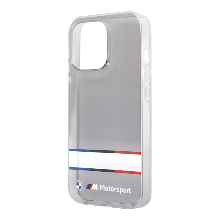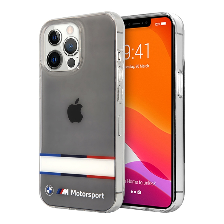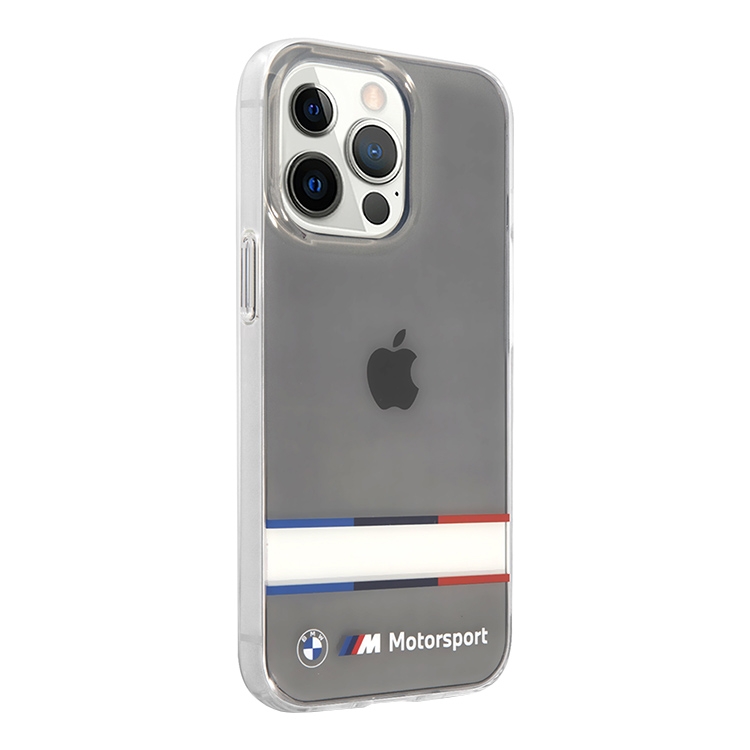 Чехол BMW Motorsport Tricolor Horizont Hard Transparent для iPhone 13 Pro, черный