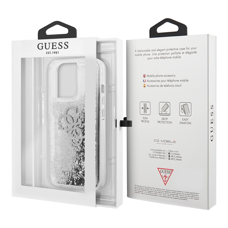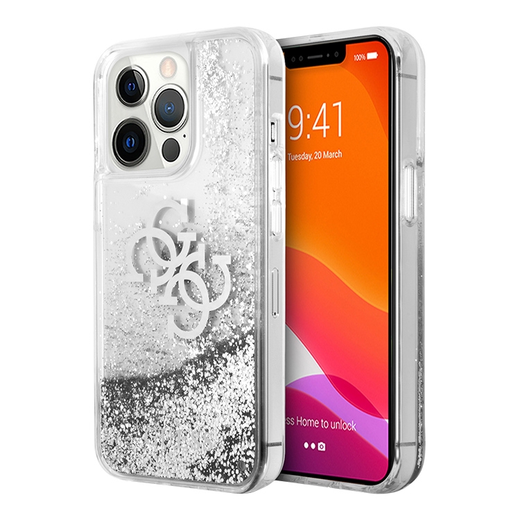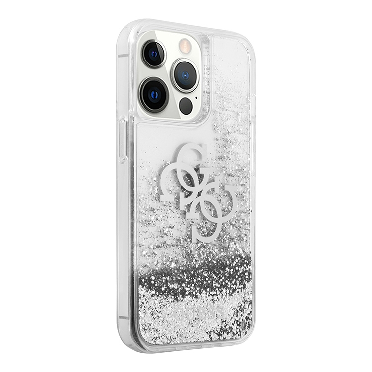 Чехол Guess Liquid glitter 4G Big logo Hard для iPhone 13 Pro, серебристый