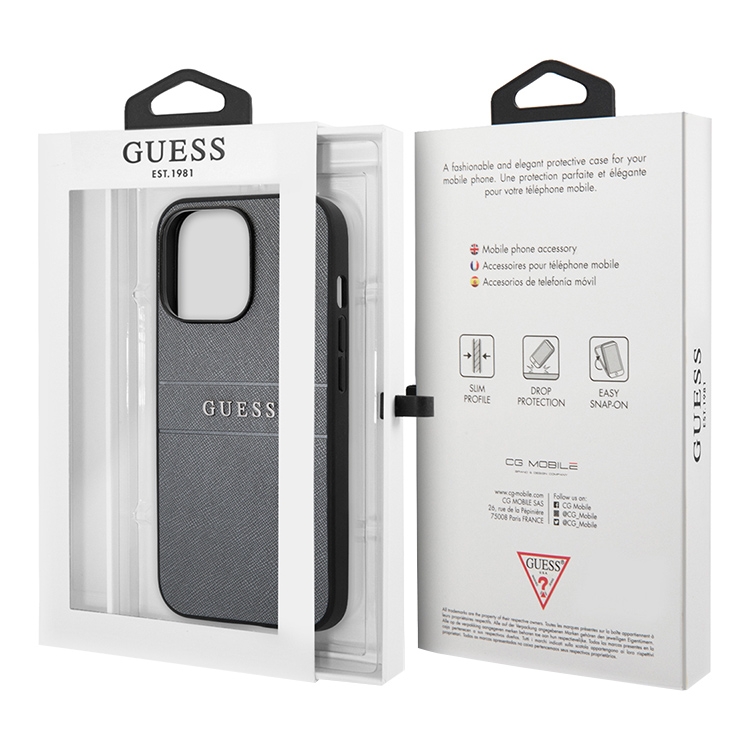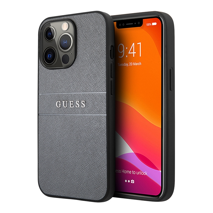 Чехол Guess PU Saffiano with Metal logo Hard для iPhone 13 Pro, серый