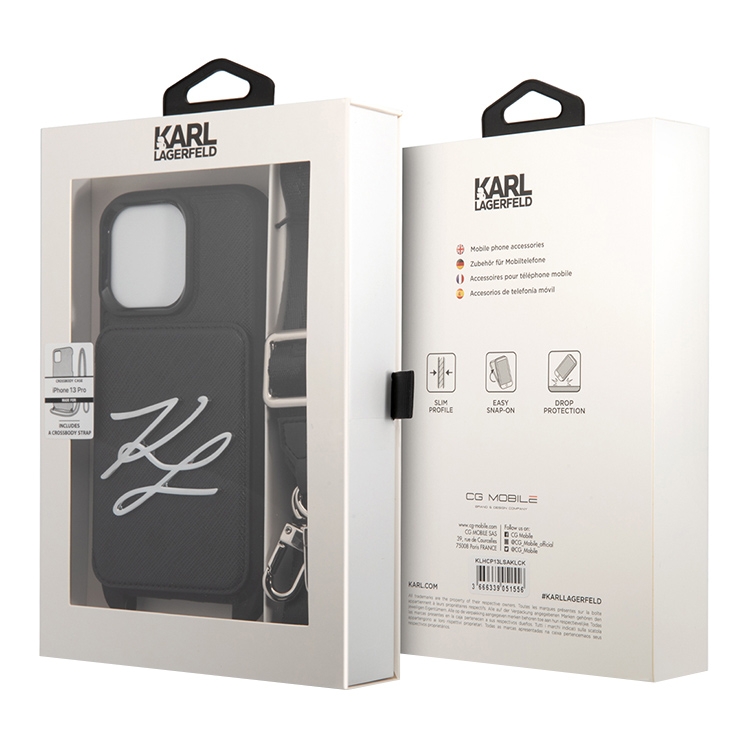 Чехол Lagerfeld Crossbody cardslot PU Saffiano Autograph Hard для iPhone 13 Pro, черный