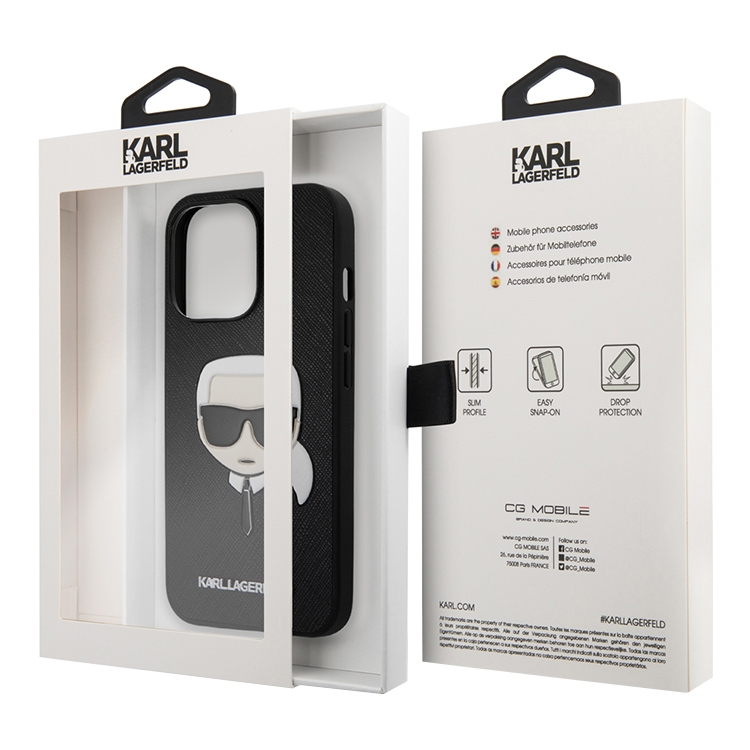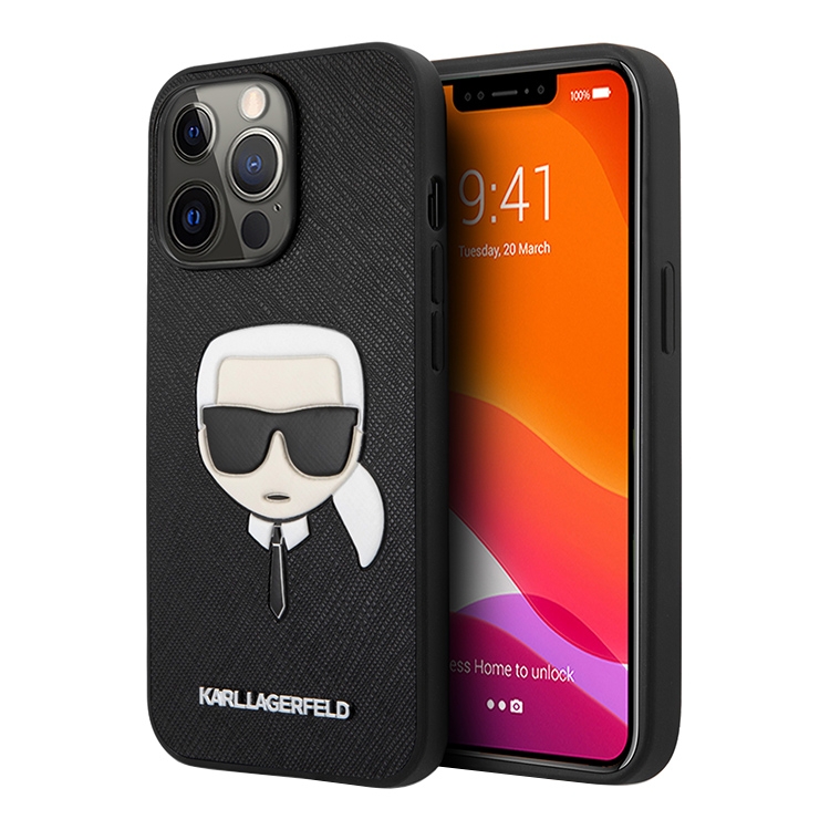 Чехол Lagerfeld PU Saffiano Karl's Head Hard для iPhone 13 Pro, черный