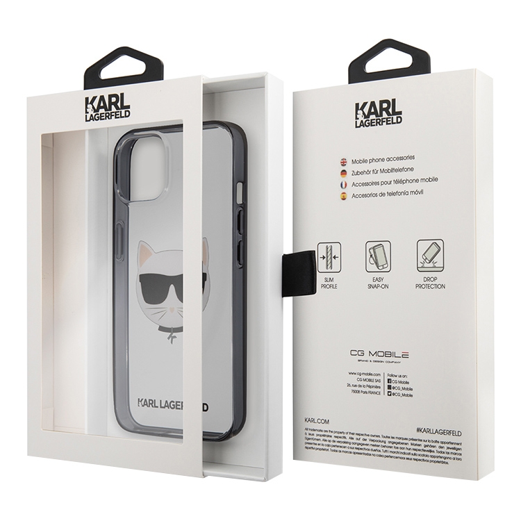 Чехол Karl Lagerfeld Choupette Hard Transparent для iPhone 13, черная рамка