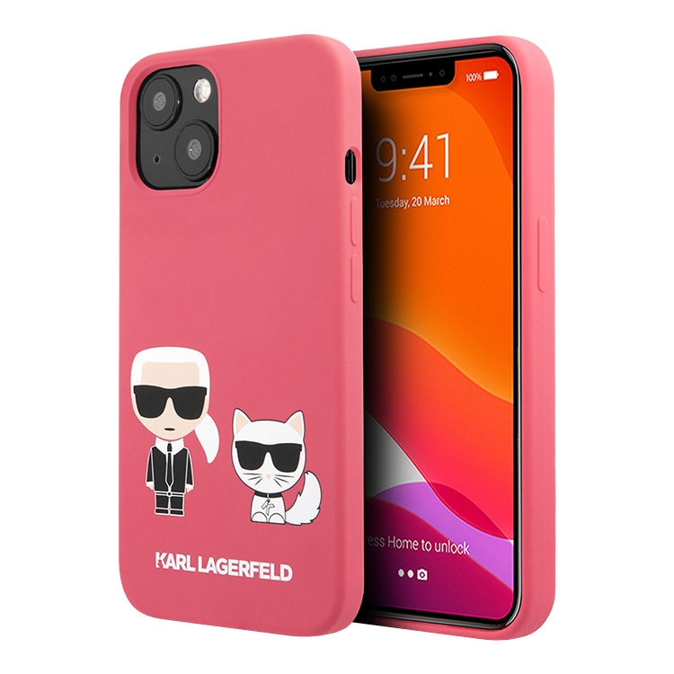 Чехол Lagerfeld Liquid silicone Karl & Choupette Hard для iPhone 13, фуксия