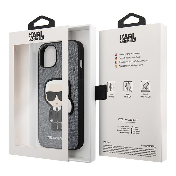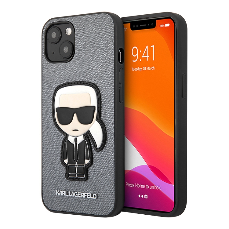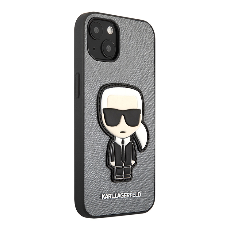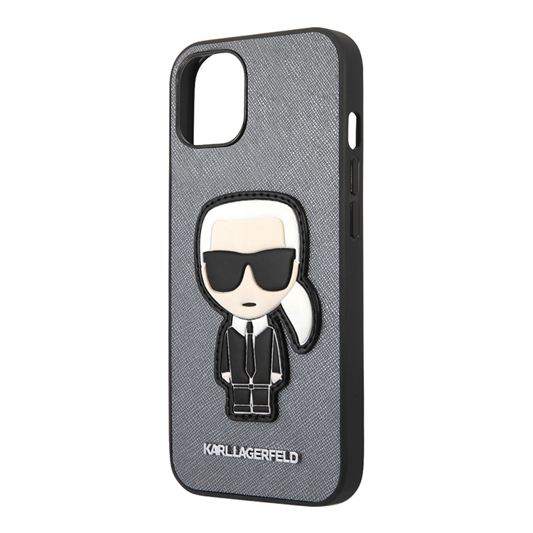 Чехол Karl Lagerfeld PU Saffiano Ikonik Patch (metal) Hard для iPhone 13, серебристый