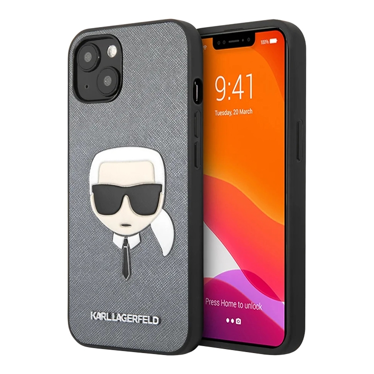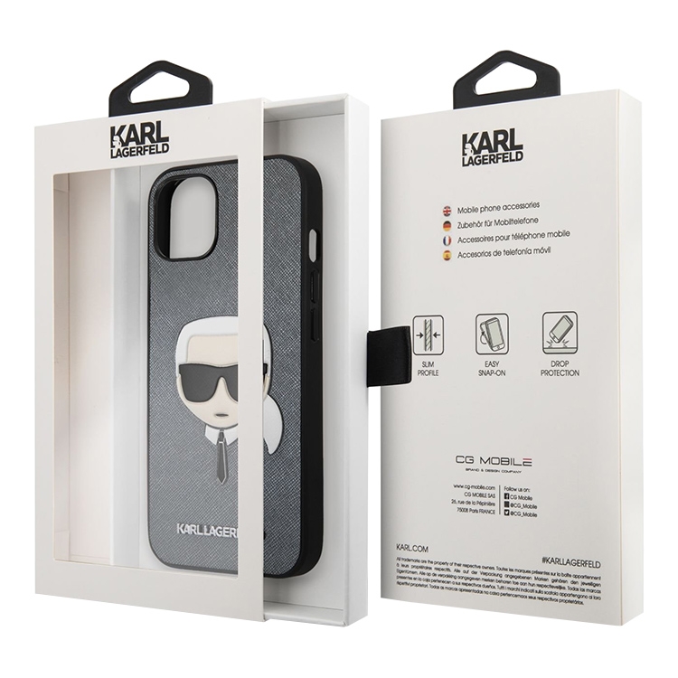 Чехол Lagerfeld PU Saffiano Karl's Head Hard для iPhone 13, серебристый