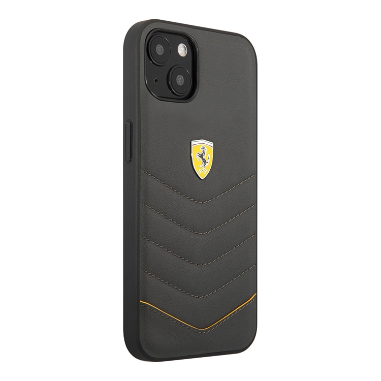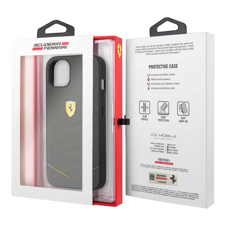 Кожаный чехол Ferrari Quilted with metal logo Hard для iPhone 13, серый