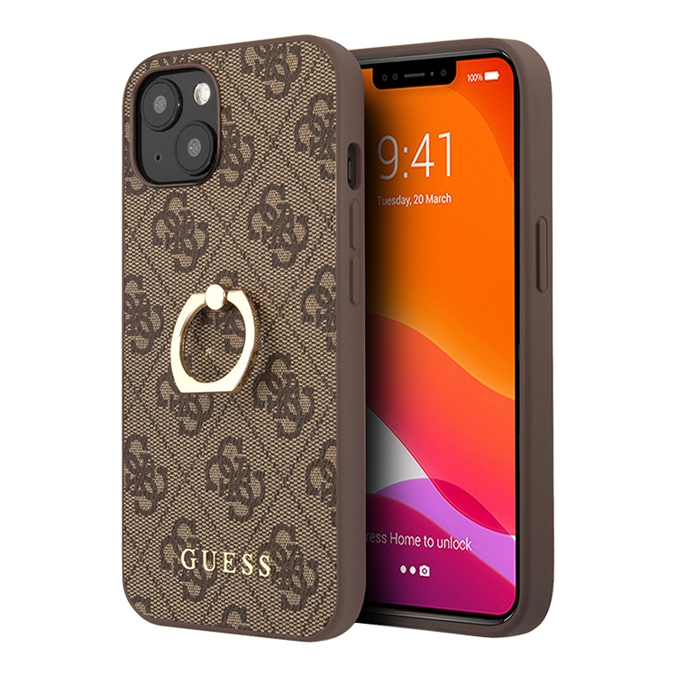Чехол Guess PU 4G + Ring Hard для iPhone 14 Plus, коричневый