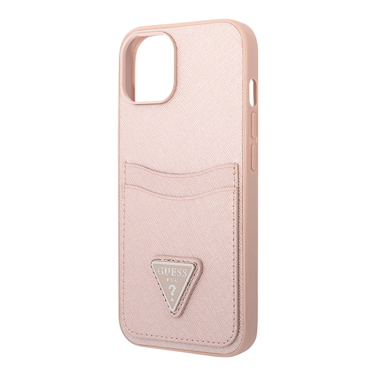 Чехол Guess PU Saffiano Double cardslot w Metal triangle logo Hard для iPhone 14 Plus, розовый