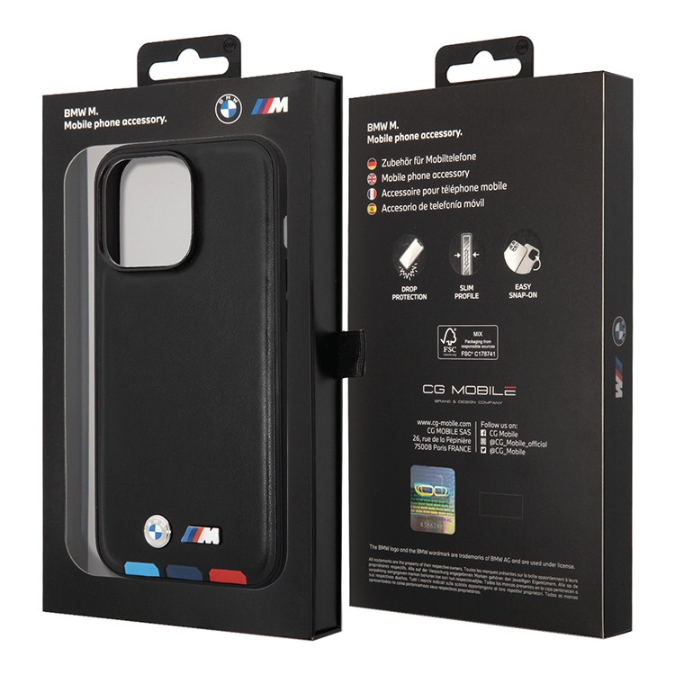 Чехол BMW PU Hot stamp tricolor Hard для iPhone 14 Pro Max, черный
