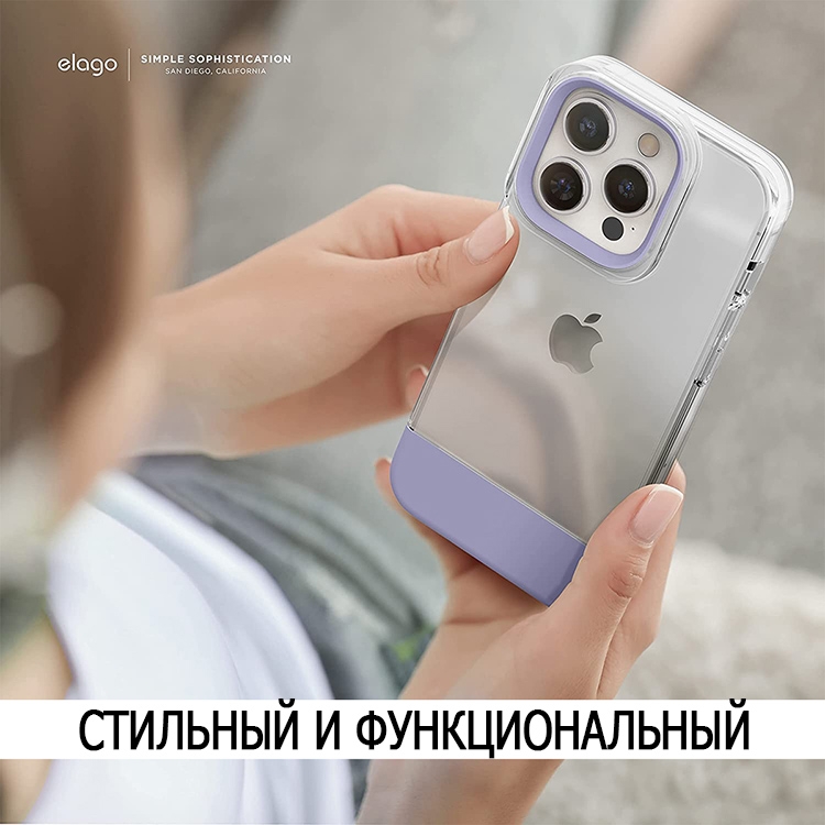 Легкий чехол Elago Glide сочетает в себе элегантный дизайн и надежную защиту. Использование двух материалов (силикон+пластик) обеспечивает идеальное сочетание стиля и функциональности. Для защиты дисплея боковые грани накладки слегка выступают над экраном, а специальный приподнятый контур вокруг камеры предохраняет ее от царапин. Чехол учитывает все конструктивные особенности айфона и обеспечивает свободный доступ к портам управления, кнопкам и камере. Не препятствует беспроводной зарядке и сигналам NFC.