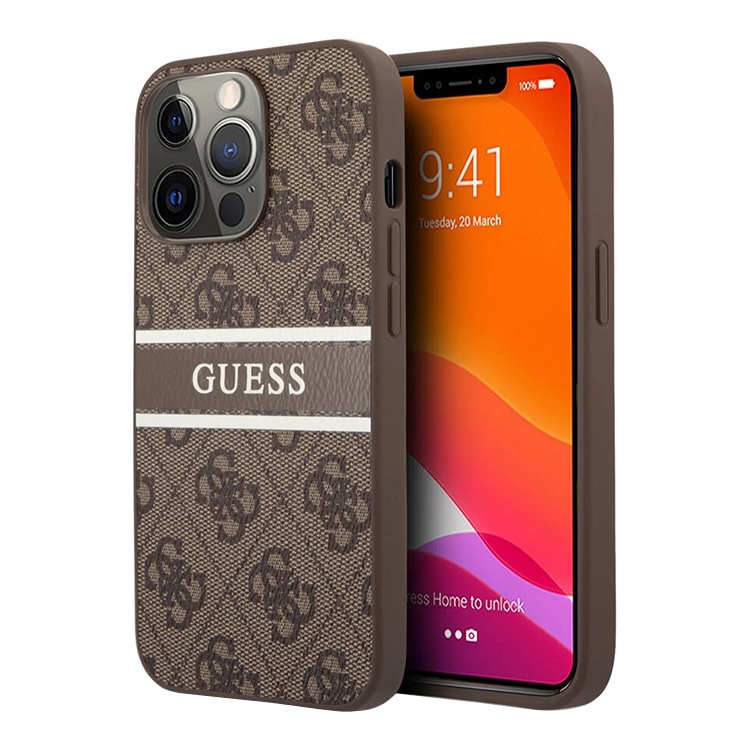 Чехол Guess 4G Stripe printed logo Hard для iPhone 14 Pro Max, коричневый