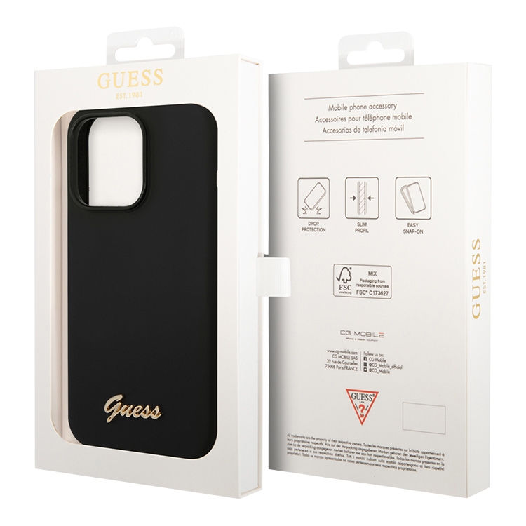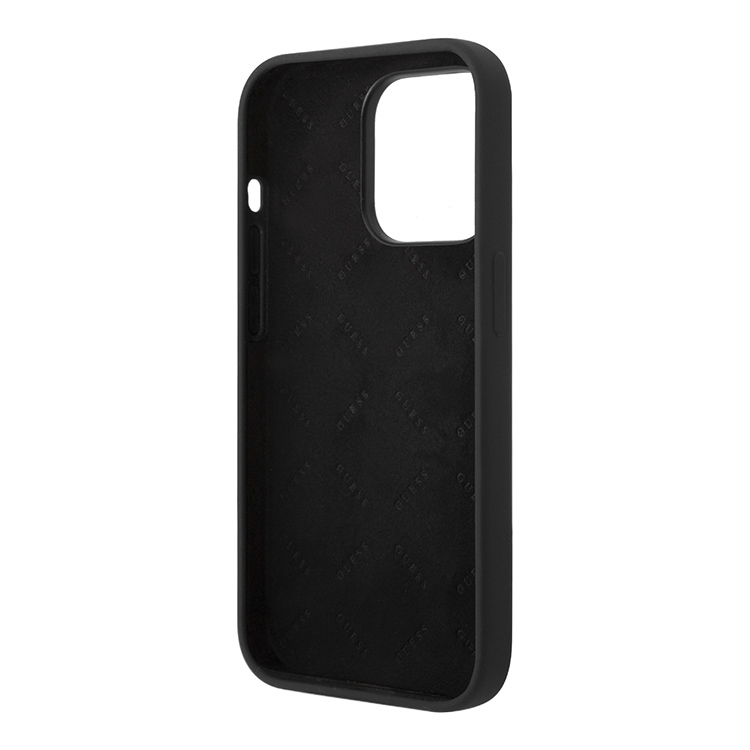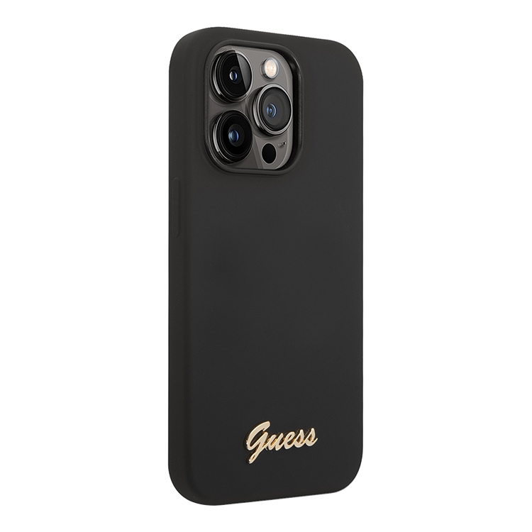 Чехол Guess Liquid Silicone Gold Metal logo для iPhone 14 Pro Max, черный