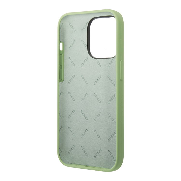 Чехол Guess Liquid Silicone Gold Metal logo для iPhone 14 Pro Max, зеленый