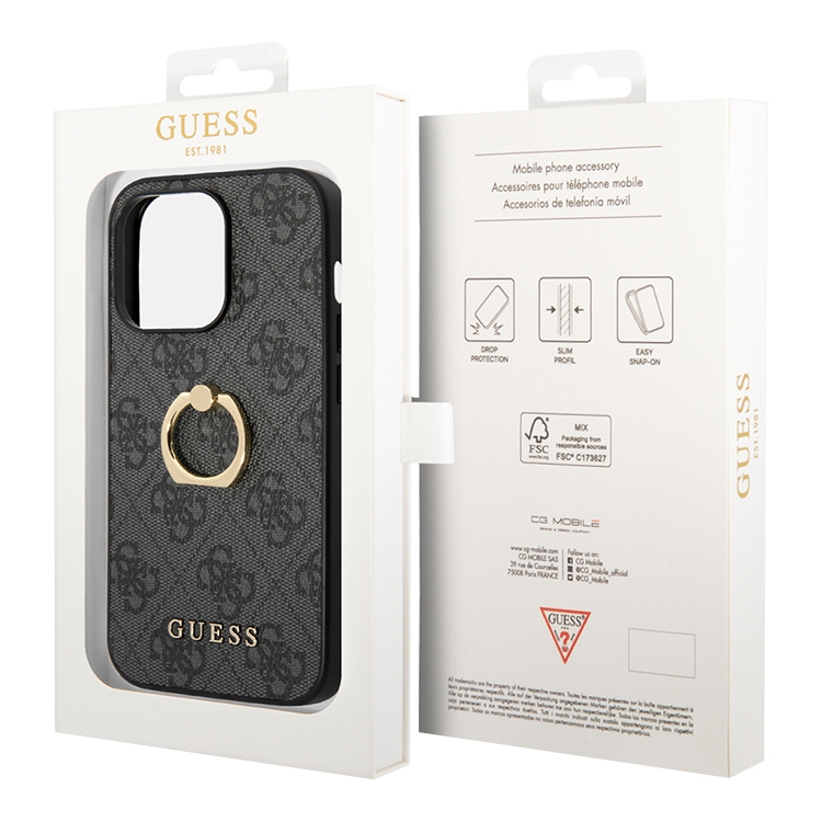 Чехол Guess PU 4G + Ring Hard для iPhone 14 Pro Max, серый