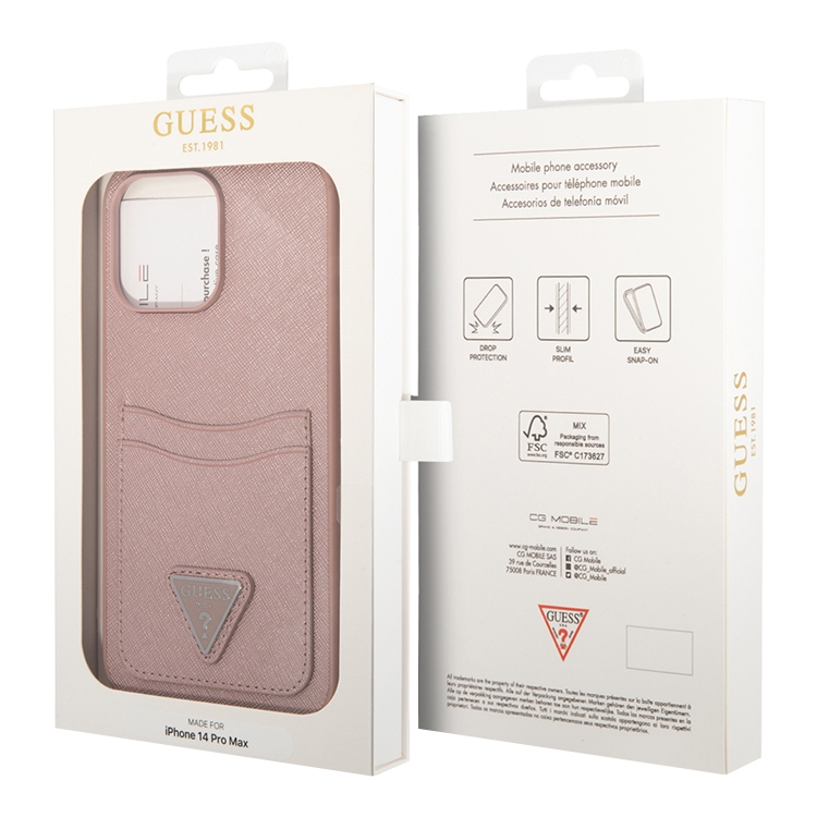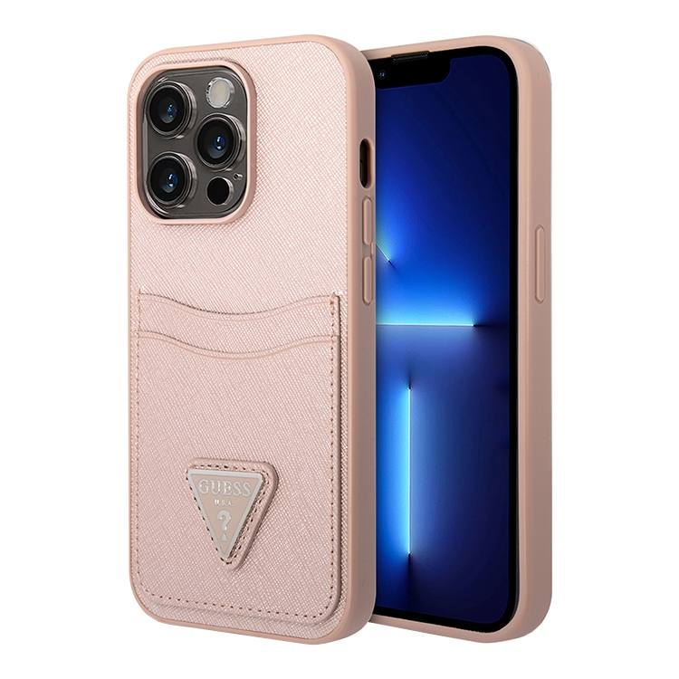 Чехол Guess PU Saffiano Double cardslot w Metal triangle logo Hard для iPhone 14 Pro Max, розовый