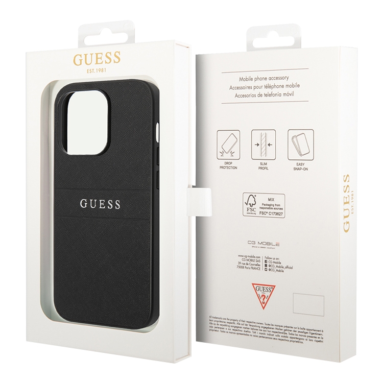Чехол Guess PU Saffiano with Metal logo Hard для iPhone 14 Pro Max, черный