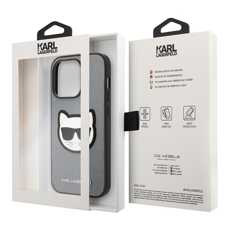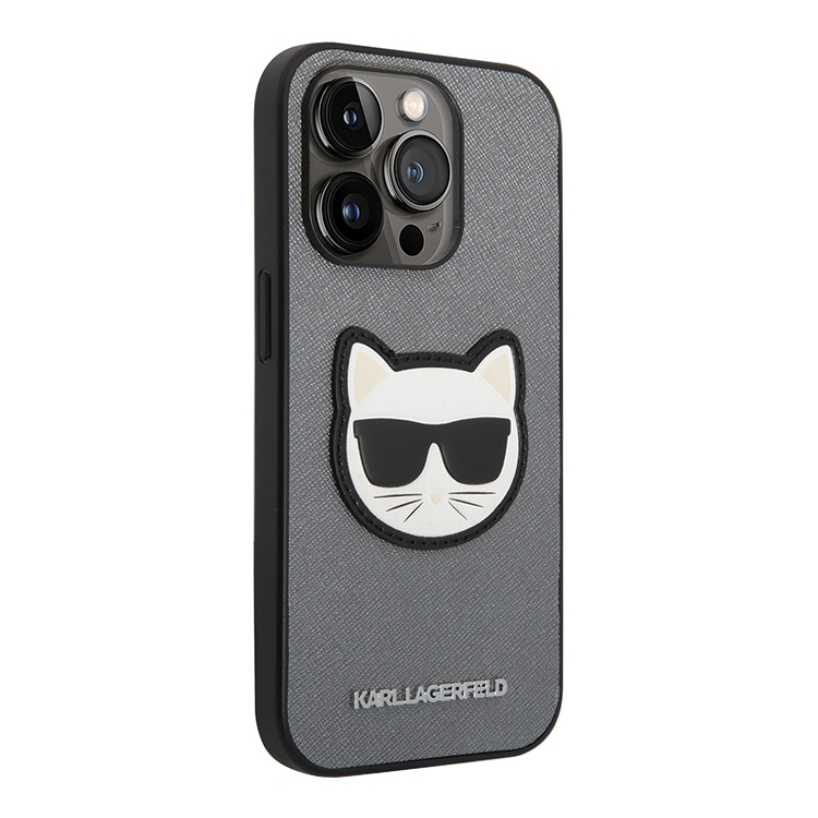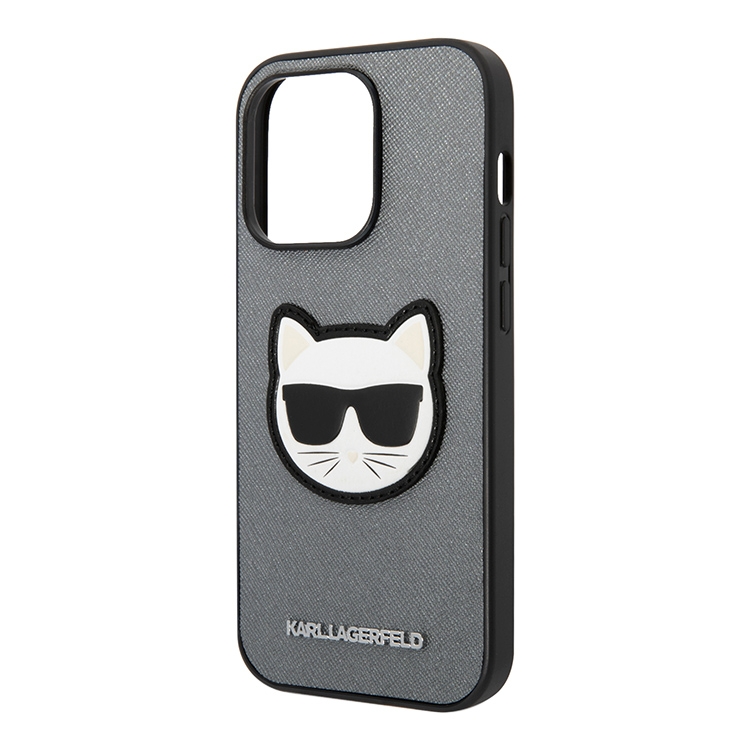 Чехол Lagerfeld PU Saffiano Choupette head Patch Hard для iPhone 14 Pro Max, серебристый