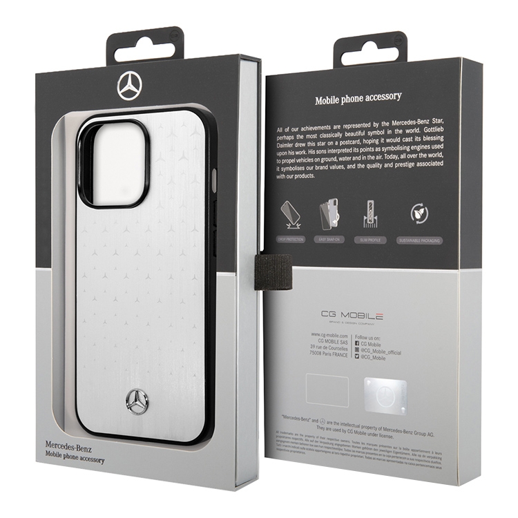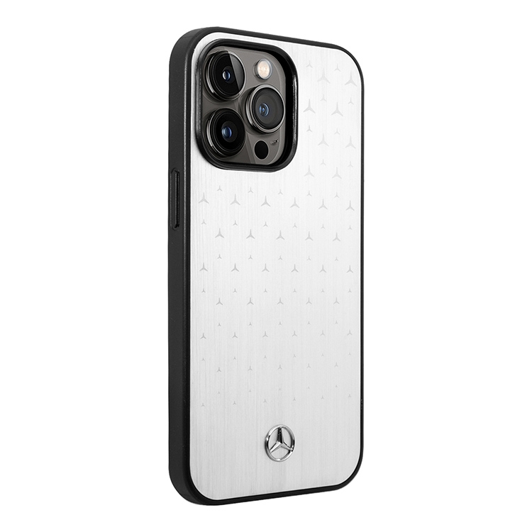 Чехол Mercedes Aluminium Stars Hard для iPhone 14 Pro Max, серебристый